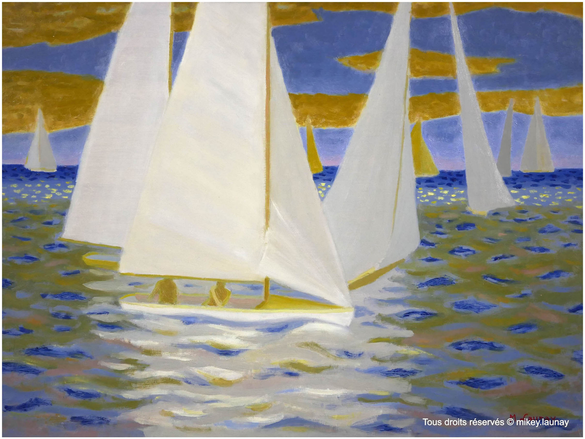 Cette décennie a été pour Michel Launay à la fois inspiratrice et variée : il décline ses thèmes sur plusieurs tableaux, Les Voiliers, Les Tentes sur la plage, Le Port du Pô près de Carnac…